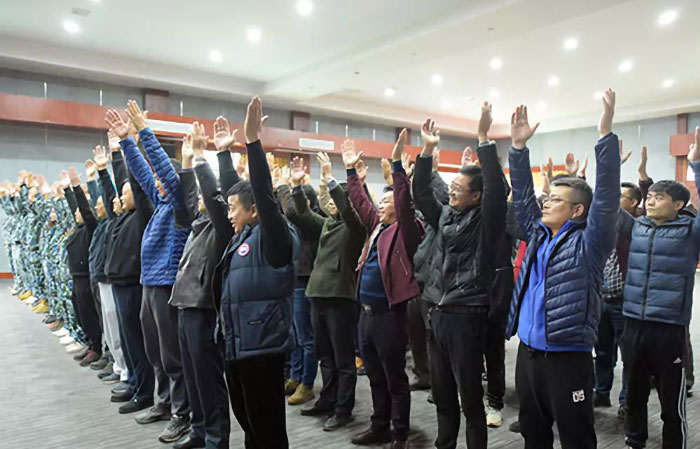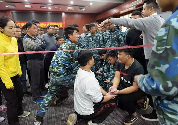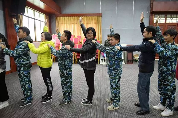 我們一齊圍成一個(gè)圈,互相拍拍肩、捶捶背,認識熟悉,鼓勁加油。玩兒個(gè)“聽(tīng)口令”的小游戲,被抓到的同志可是要上臺表演節目呢!